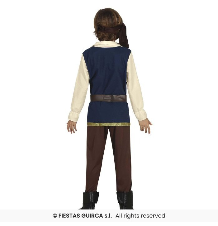 Ahoy matey! Set sail on a swashbuckling adventure with this Kids Blue Pirate Costume. This fun and classic outfit includes a cream pirate-style shirt, brown trousers, a wide belt with a silver buckle, and a red headband to complete the look. Perfect for World Book Day, pirate parties, school plays, or fancy dress fun on the high seas!