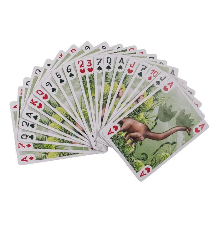 These dinosaur-themed playing cards bring a prehistoric twist to classic card games, featuring beautifully illustrated artwork inspired by ancient landscapes and iconic dinosaurs. Each card displays unique dinosaur imagery or fossil-style patterns, adding a fun and educational element to gameplay. The deck contains 54 cards in standard playing card format, making it suitable for all traditional card games.