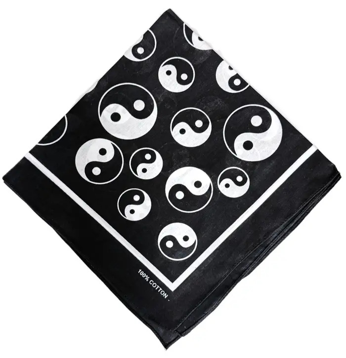 Bandanas have lots of practical uses as well as just looking good. We sell a wide variety that is constantly changing, although we always have the most popular types in stock! This Ying & Yang bandana remains one of our most popular thanks to it's Unique yet simple design!