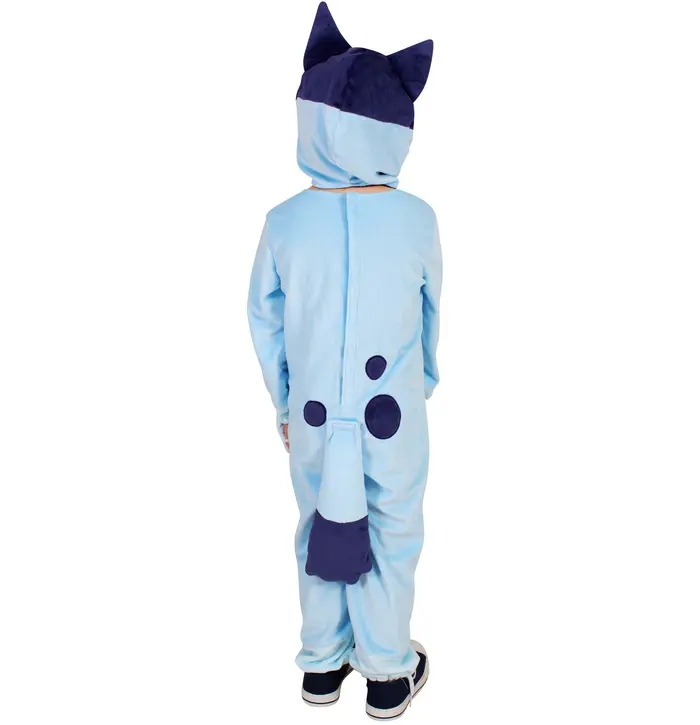 Step into the imaginative world of Bluey with this adorable costume for kids! The comfy jumpsuit and plush detachable headpiece bring the lovable Bluey character to life, inspiring endless play and creativity. Let your little one embark on exciting adventures just like Bluey in this fun and iconic costume.