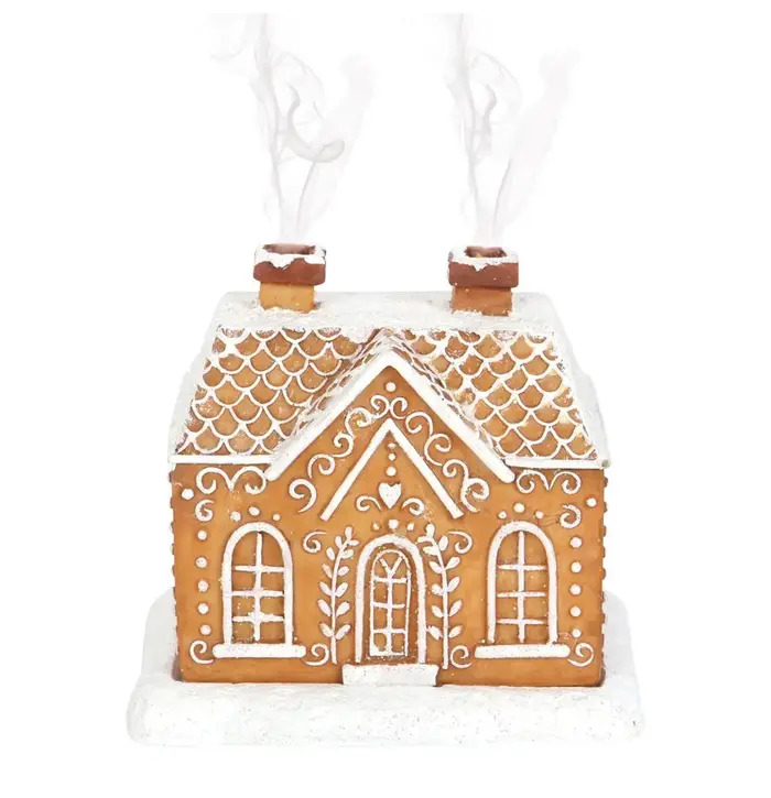 This charming gingerbread house incense cone burner brings festive warmth and sweetness to your home. Designed to look just like a classic gingerbread cottage, it features intricate icing-style detailing, arched windows, and a snow-dusted roof. When an incense cone is placed inside, smoke drifts gently from the two chimneys, creating a magical, freshly-baked effect that enhances any winter or holiday décor. Perfect for gifting or adding a cosy seasonal touch, this burner blends adorable design with soothing aromatic ambience.