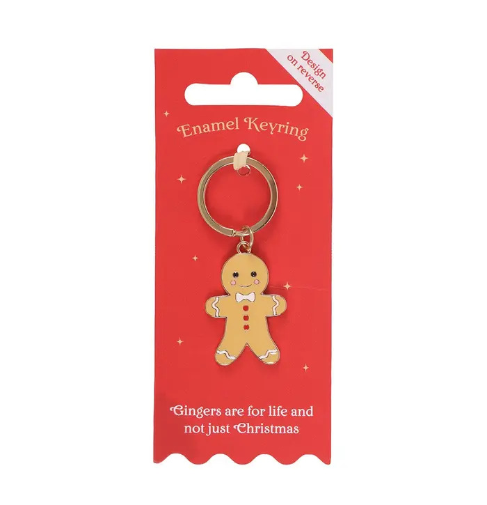 This adorable enamel gingerbread keyring adds a sweet touch to your everyday essentials. Featuring a charming gingerbread character complete with icing details and a bow tie, it’s attached to a sturdy gold-tone keyring perfect for keys, bags, or festive accessories. Presented on a bright red backing card with the playful message “Gingers are for life and not just Christmas,” it makes a fun stocking filler, Secret Santa gift, or a cute treat for yourself.