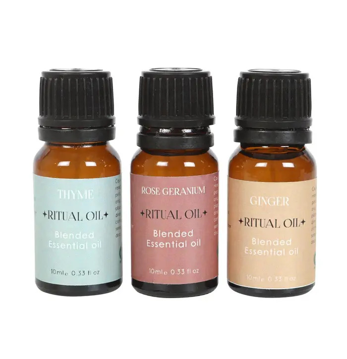 The ‘Love’ Ritual Oil Pack includes three beautifully blended essential oils—Thyme, Rose Geranium, and Ginger—each chosen for their uplifting, comforting, and heart-centred properties. Designed to support intention-setting, meditation, self-care rituals, or simply to create a soothing atmosphere, these 10ml amber bottles deliver warm, aromatic notes that inspire emotional balance and positive energy. Perfect for diffusers, oil burners, spiritual practices, or gifting to someone special.