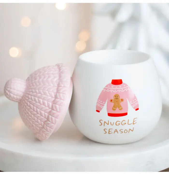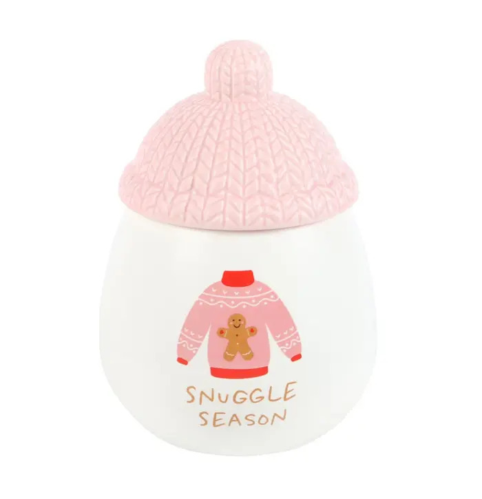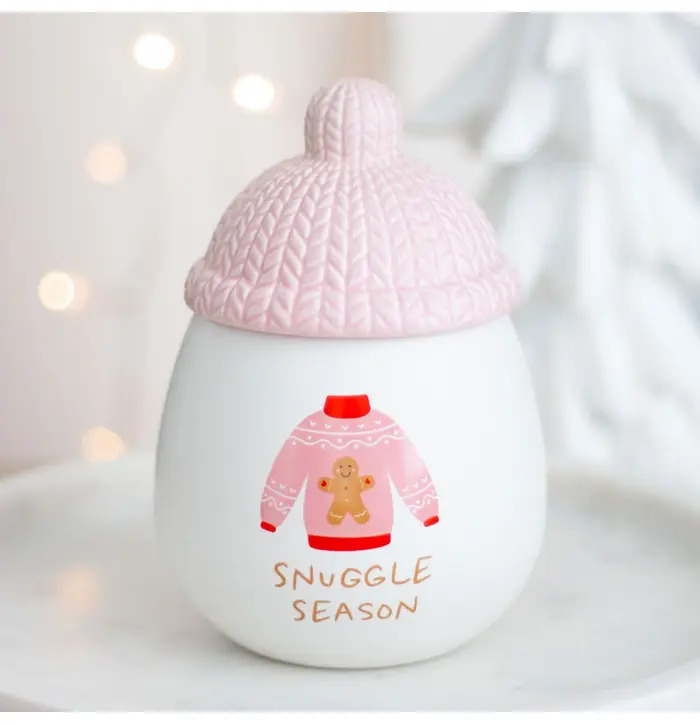 This adorable oil burner is the perfect cosy-season companion. Designed with a soft white base and topped with a pink, knitted-effect hat lid, it brings a warm and charming winter aesthetic to any room. The front features a festive pink jumper illustration complete with a cute gingerbread character and the phrase “Snuggle Season,” making it an ideal décor piece for the colder months. Simply add your favourite fragrance oil or wax melt inside to fill your space with comforting seasonal scents while adding an irresistibly cute touch to your home.