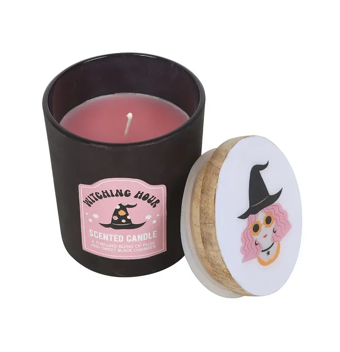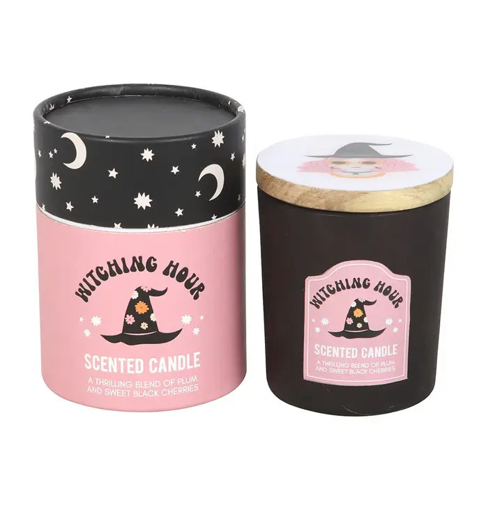 This Witching Hour Scented Candle brings a touch of spooky sweetness to your space. Presented in a matte black glass jar with a pastel pink label, this candle features charming witch-themed artwork and a decorative illustrated lid. The scent offers a rich, thrilling blend of plum and sweet black cherries—perfect for autumn evenings, Halloween décor, or anyone who loves a magical, mystical aesthetic. Beautifully packaged in a matching starry box, it makes an ideal seasonal gift or a stylish addition to your own cosy setup.