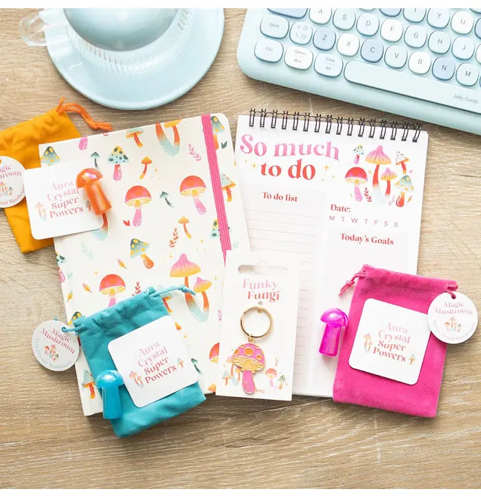 This vibrant Funky Fungi keyring features a bold and whimsical pink mushroom charm with golden detailing, perfect for adding a burst of colour and personality to keys, bags, or backpacks. With its playful design and eye-catching enamel finish, it’s a must-have accessory for lovers of cottage-core, nature, or all things quirky and magical. A fun little gift that brings charm and cheer wherever it goes.