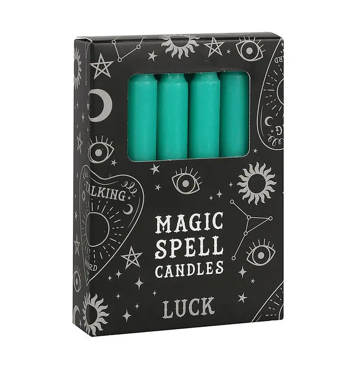 These Luck Magic Spell Candles are crafted to support rituals, manifestation work, and intention-setting centred around prosperity, opportunity, and positive outcomes. Presented in a mystical black box decorated with celestial and occult-style illustrations, the set includes a collection of green spell candles—traditionally associated with luck, growth, and abundance. Ideal for meditation, altar setups, spiritual practice, or as part of ritual kits, each candle helps focus energy toward attracting good fortune and new beginnings.