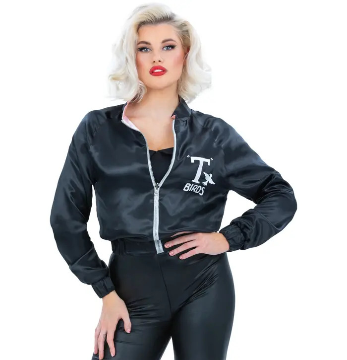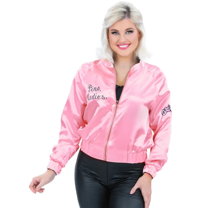 This pink satin style jacket is a classic 50s inspired fancy dress piece, famously associated with the film Grease. Designed with a glossy finish and a front zip fastening, it features “Pink Ladies” script on the front for that instantly recognisable girl gang look from the movie. Lightweight and comfortable, it’s perfect for themed parties, movie-inspired costumes, Halloween, and 1950s rock and roll events. Pair it with black leggings, a neck scarf, and retro accessories to recreate an iconic Grease-inspired fancy dress outfit.