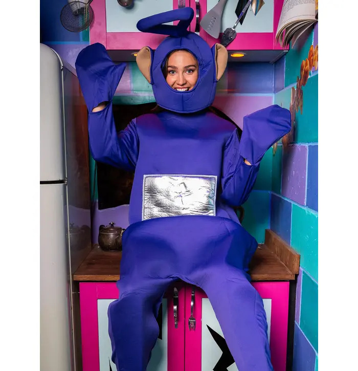 Go back to your Childhood with this Tinky Winky Costume from the Teletubbies series! Complete with His iconic Triangle Antenna along with the screen of every teletubby!