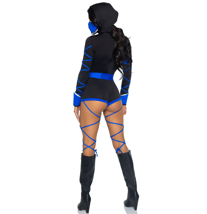 Be prepared for battle with this unique blue ninja fancy dress costume, the dragon designed costume will sure get you noticed. The colours and design of this costume really creates a sexy look.
