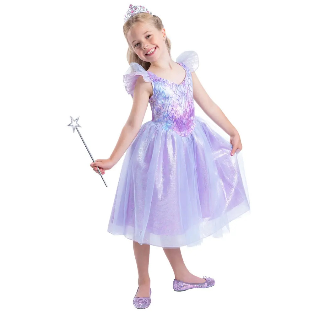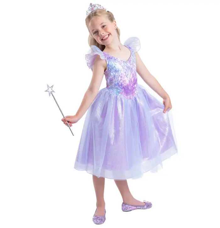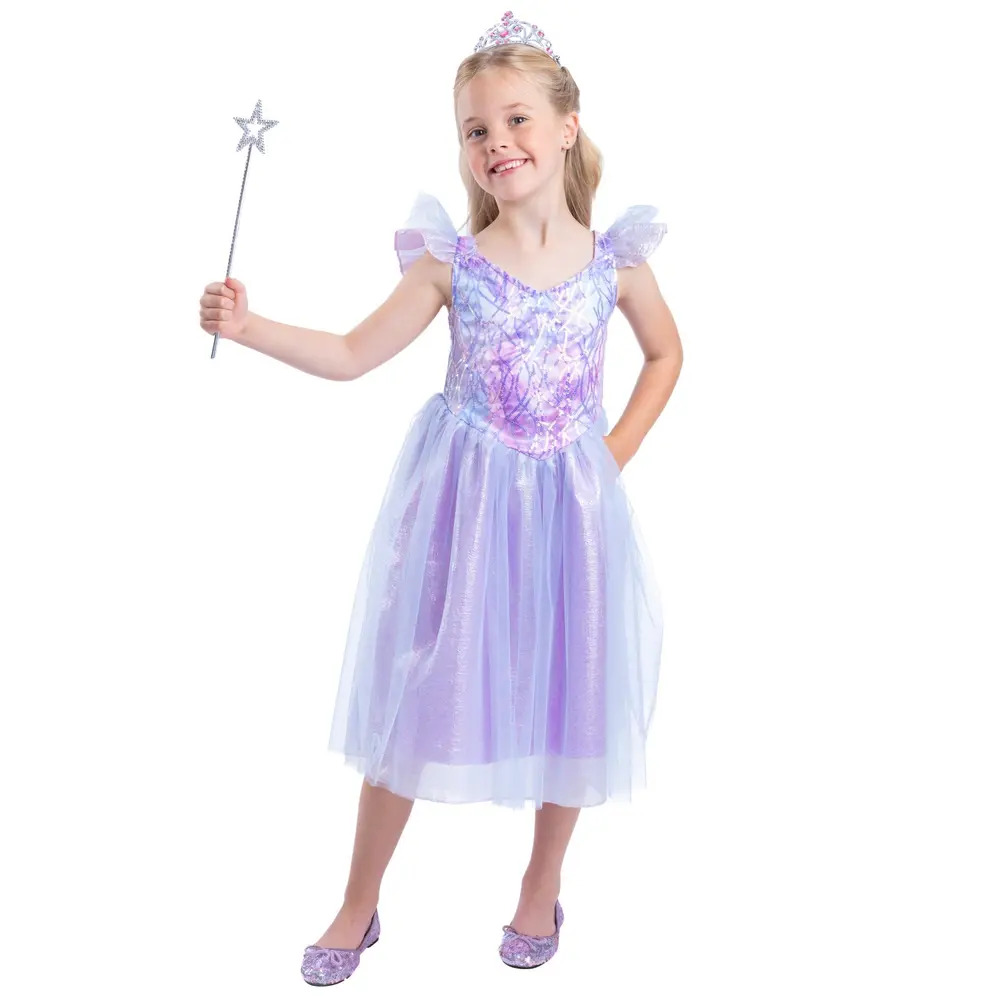 Transform your little one into a magical Fairy Princess with this enchanting costume set. The shimmering lavender dress, adorned with ethereal patterns, will have her twirling with delight. Complete with a dazzling headband crown fit for royalty and a star-tipped wand.