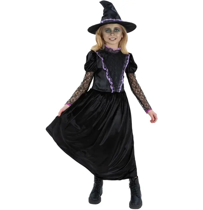 Transform your little one into a magical spellcaster with this Witch from the West costume! This enchanting girls’ outfit includes a beautifully designed dress with whimsical details and a matching pointed hat, perfect for Halloween, costume parties, or imaginative play. Comfortable, easy to wear, and full of charm, it’s the perfect choice for any young witch ready to cast her first spell.