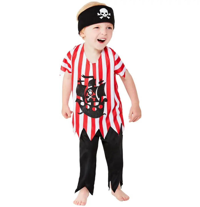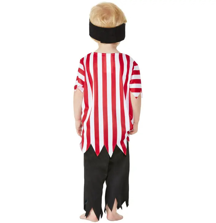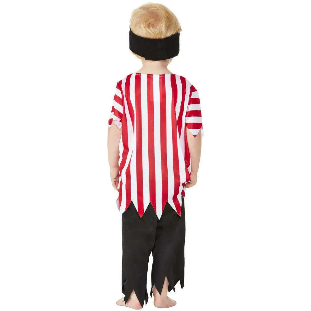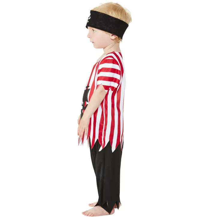 Get ready to set sails with this Toddler Jolly Pirate Costume complete with Top, Trousers & Bandana. Own the seven seas with this bold costume suitable for every fancy dress event, world book day or pirate themed parties!