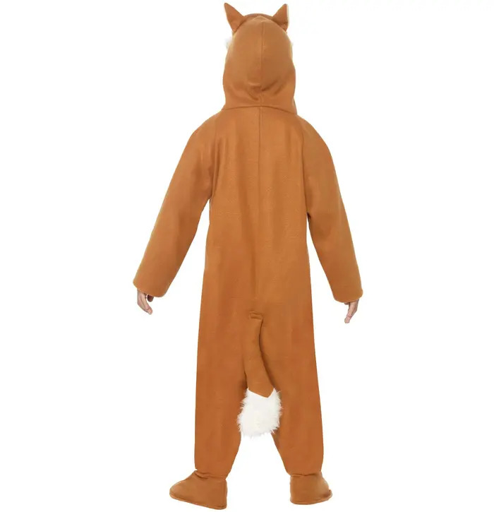 This kids fox fancy dress costume is perfect for animal-themed parties, school events, and imaginative play. Designed as a cosy all-in-one jumpsuit, it features a soft hood with cute fox face details, ears, and a fluffy tail at the back for a fun and friendly woodland look. Comfortable and easy to wear, this costume is ideal for World Book Day, Halloween, nativity plays, or everyday dress-up adventures. A charming choice for children who love animals, nature, and creative role play.