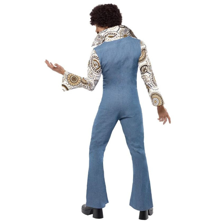 This costume comes in one piece making it easy to put on and use! You could even take it a step further with some funky tinted round hippy glasses and a puffy afro to complete the look!