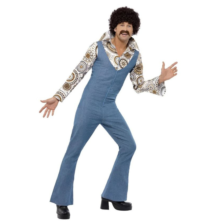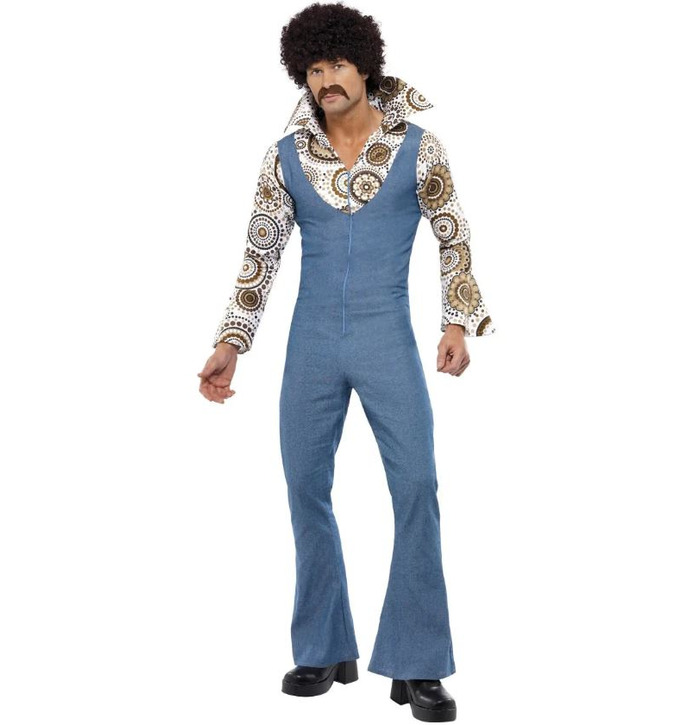 Unleash the best dance moves of all time with this 70s Groovy dancer costume! Complete with a funky Flared shirt and tight blue jumpsuit you can hit the streets in style!