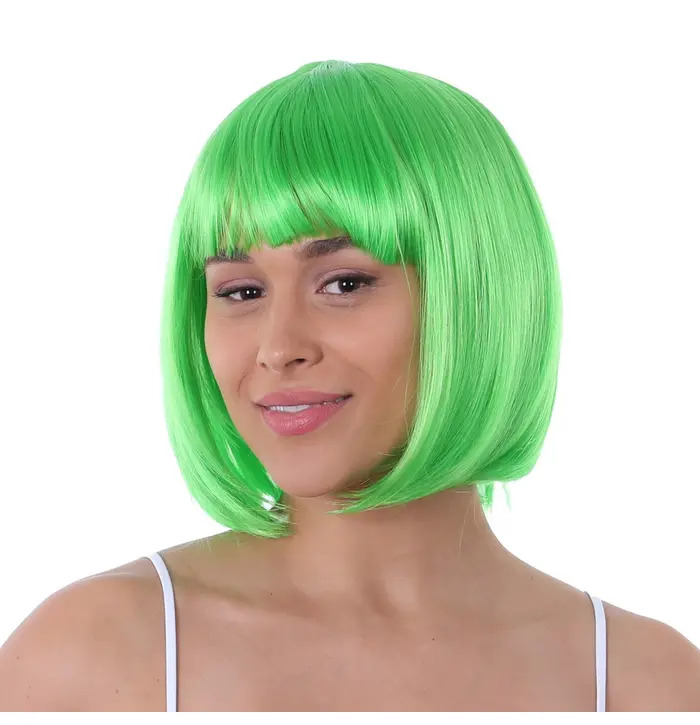 Make a bold statement with this neon green short bob wig, featuring a smooth synthetic finish and soft fringe for a vibrant, eye-catching look. Perfect for cosplay, parties, festivals, Halloween, and themed events. Lightweight, comfortable, and easy to wear, it’s the ultimate accessory for standing out in style.