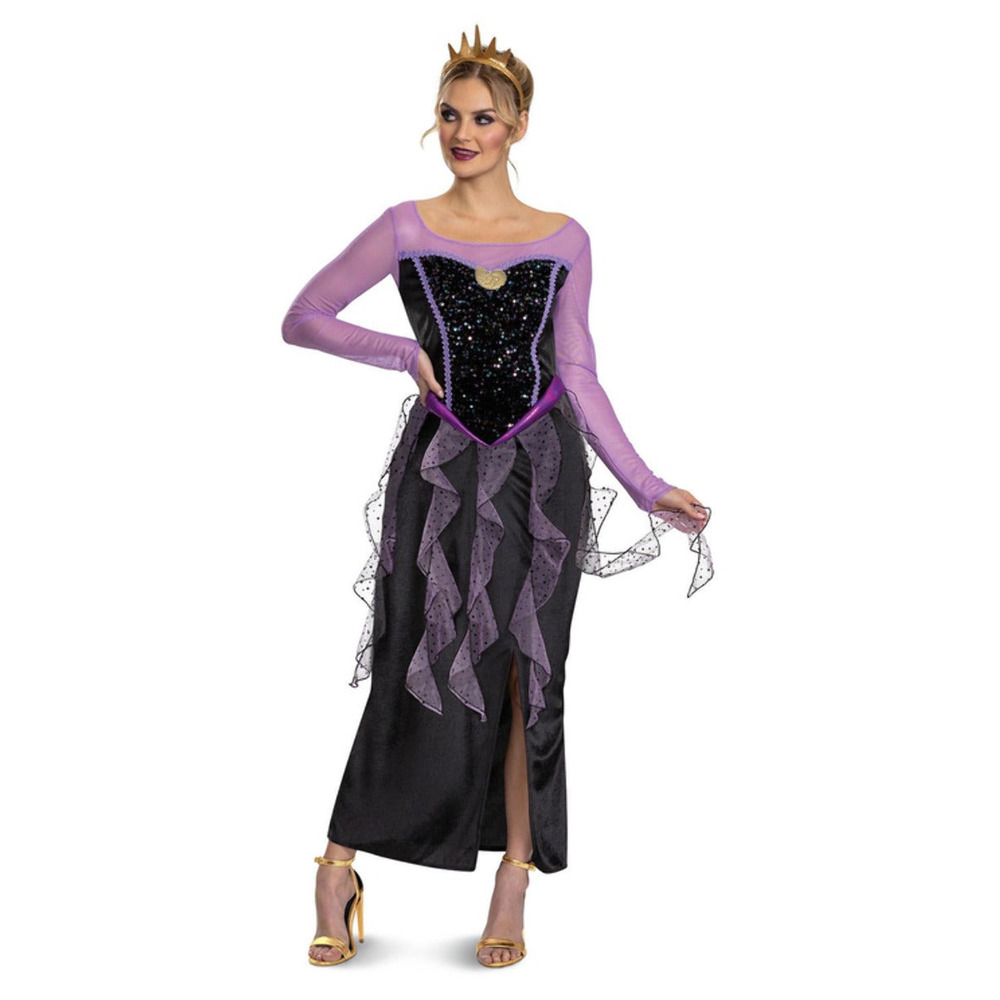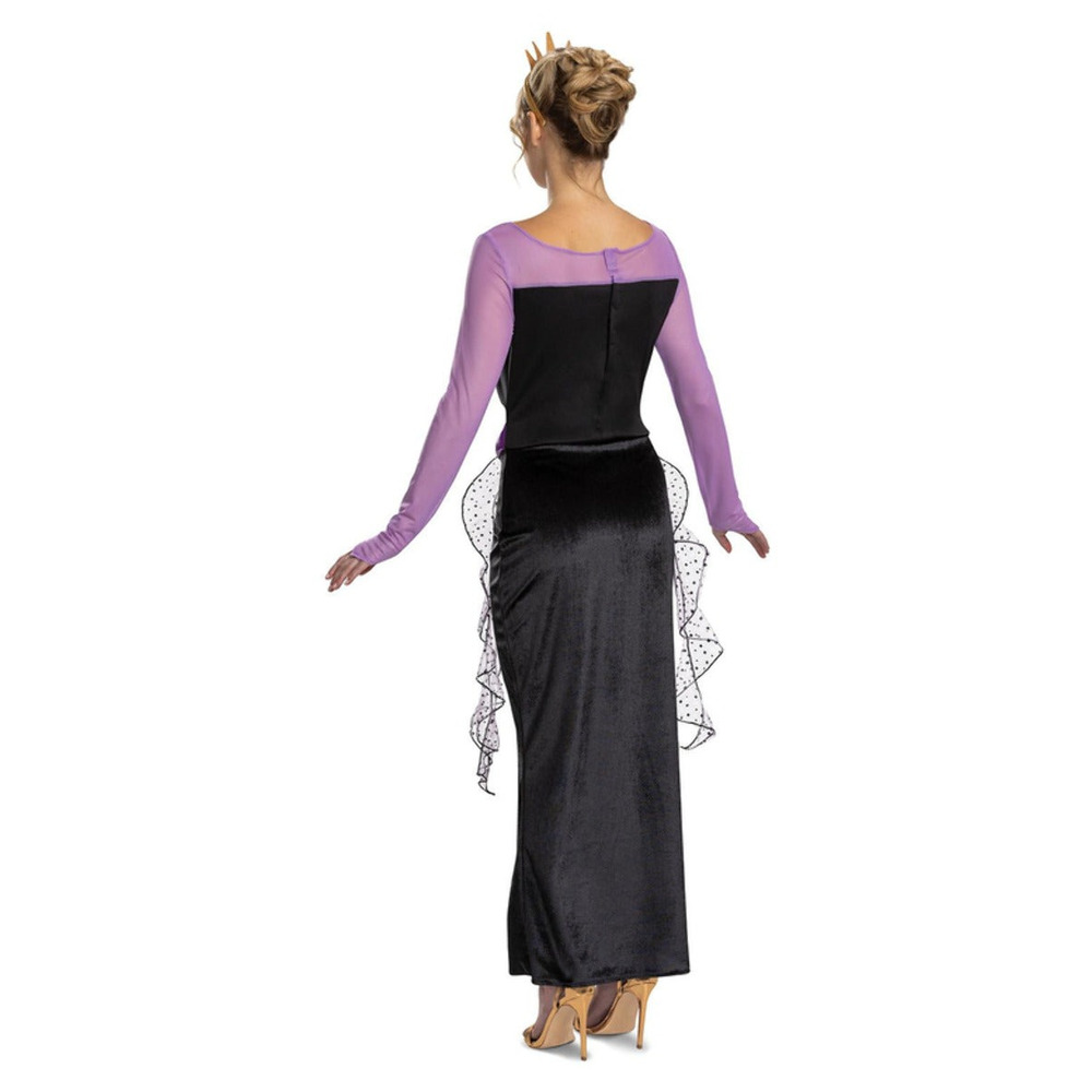 Transform into the iconic sea witch with this Disney Villains Ursula Costume! This elegant dress features a shimmering black bodice with sparkling details, flowing purple sleeves, and a multi-layered ruffled skirt that captures the essence of Ursula's villainous style. Perfect for Halloween, costume parties, or Disney-themed events, this dress will make you feel powerful and ready to rule the seas.