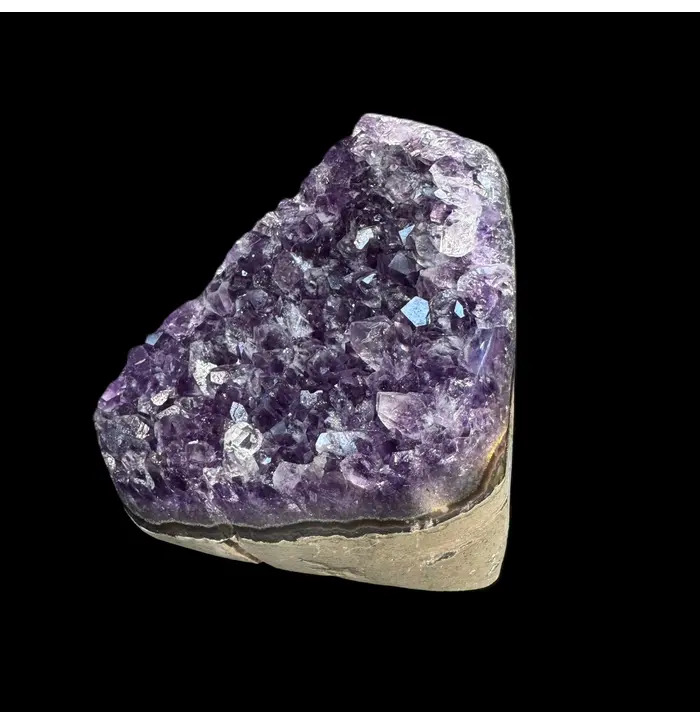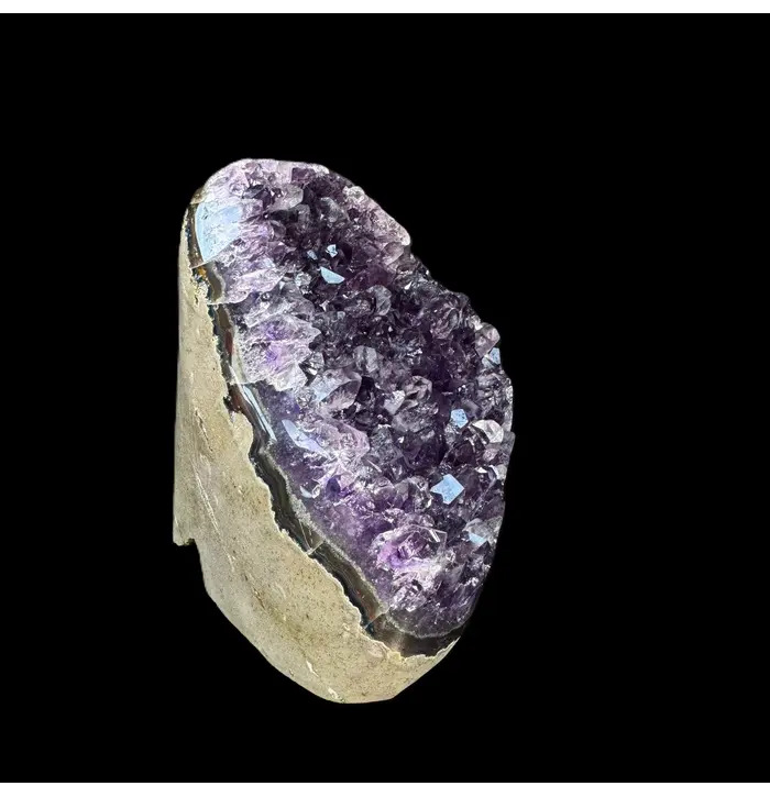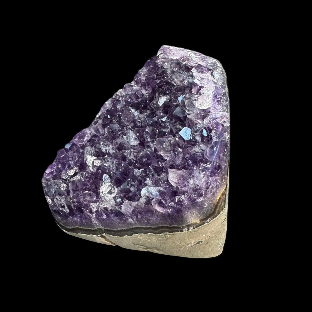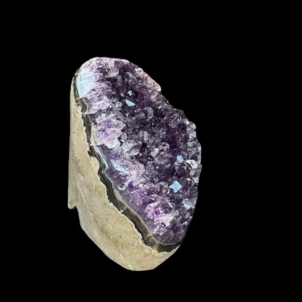 Discover the natural beauty of this stunning Amethyst Geode, a captivating addition to any space or collection. This unique piece features a mesmerising array of deep purple crystals nestled within its rugged exterior. The geode has been meticulously cut and polished to showcase its inner splendour, making it a perfect display piece.