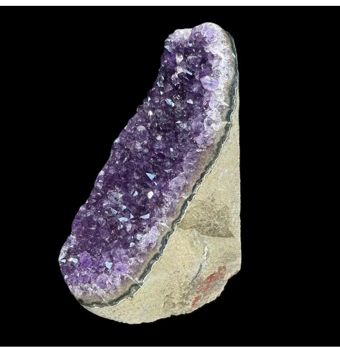 Discover the natural beauty of this stunning Amethyst Geode, a captivating addition to any space or collection. This unique piece features a mesmerising array of deep purple crystals nestled within its rugged exterior. The geode has been meticulously cut and polished to showcase its inner splendor, making it a perfect display piece.