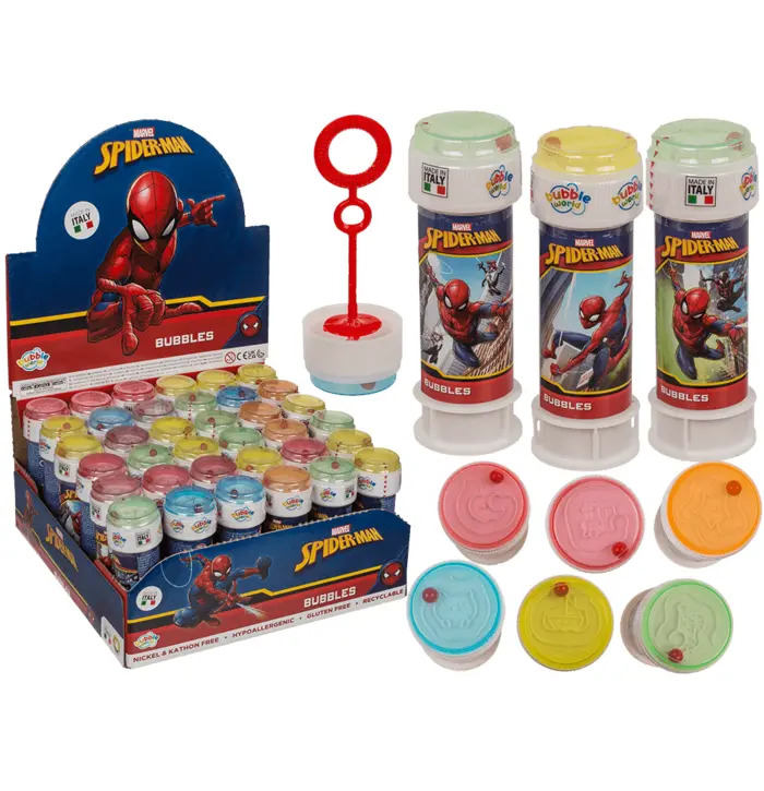 These Spider-Man bubble tubes bring fun and excitement to outdoor play, featuring colourful designs with dynamic Spider-Man artwork. Each tube contains bubble solution, a wand built into the lid, and a small puzzle game on top for added entertainment. The assorted lid colours and embossed puzzle designs make each piece a fun surprise for children. These bubbles are lightweight, easy to carry, and perfect for parties, goodie bags, outdoor activities, and everyday play.
