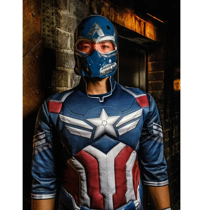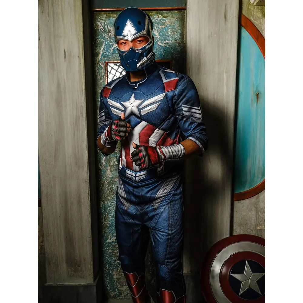 Unleash your inner hero with the Rubies Captain America Deluxe Costume for Adults. Inspired by the thrilling film "Captain America: Brave New World," this deluxe costume takes your cosplay experience to new heights. The set includes a jumpsuit, fingerless gloves, and a half mask, ensuring an authentic transformation into the beloved Avenger.