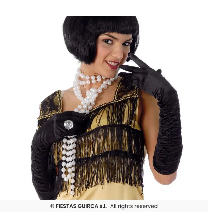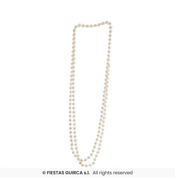 This long pearl necklace is a classic fancy dress accessory, perfect for completing 1920s flapper, vintage glamour, and jazz-age themed costumes. Designed with multiple strands of glossy faux pearls, it adds instant elegance and old-Hollywood charm to any outfit. Lightweight and comfortable to wear, this necklace is ideal for fancy dress parties, Gatsby nights, theatre productions, or costume events where vintage style is key. A versatile accessory that pairs beautifully with flapper dresses, evening gowns, and retro outfits.