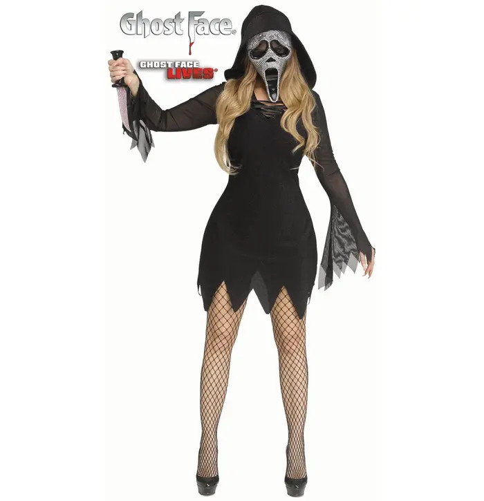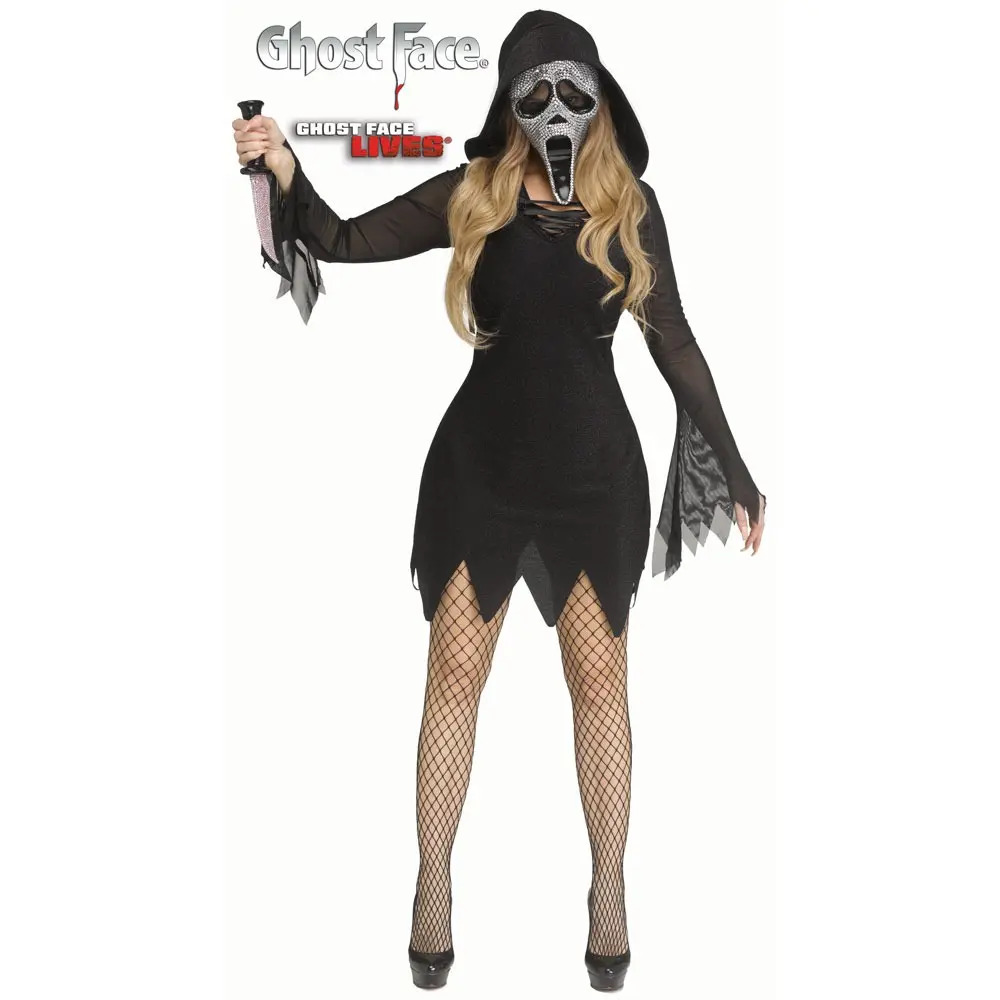 Get ready this Halloween with this Official Deluxe Bling Ghost Face Costume! Bring out your inner darkness with this gorgeous robe with jagged edges and the bling mask! Crafted with diamontes to bring some shine to your costume.