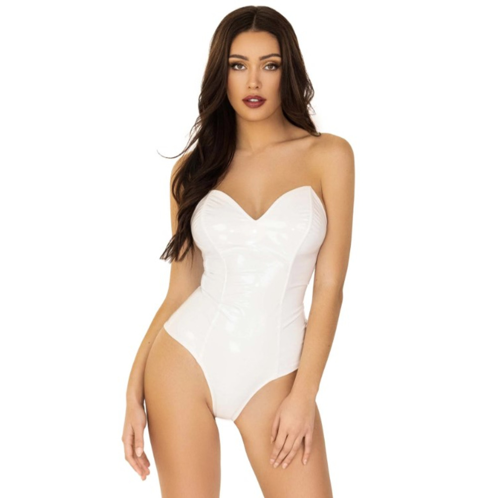 Sexy Halloween costumes are all about the details, and this strapless White Vinyl Bodysuit by Leg Avenue is sure to inspire amazing Halloween costume ideas. The ultra-sexy womens bodysuit features a boned front and zipper back, with a bat-wing bodice detail that's perfect for sexy costumes and daring role play looks.