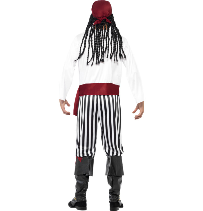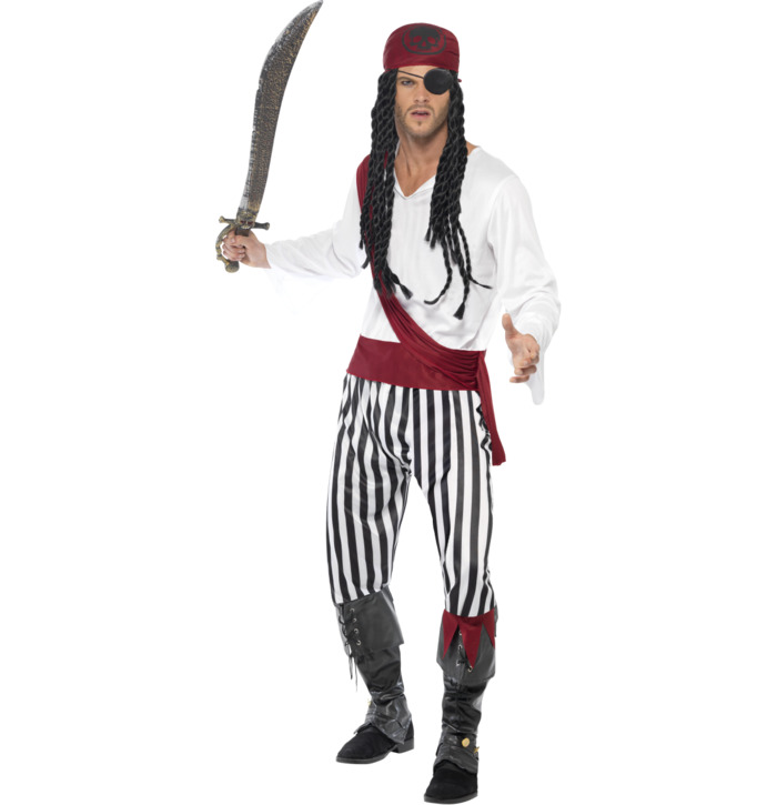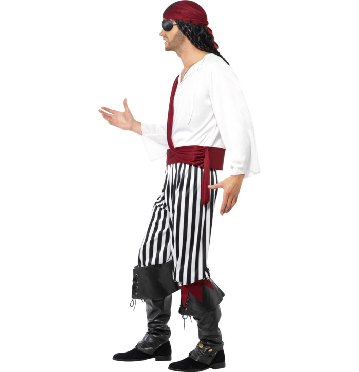 Ooh arr! Sail the seven seas in the Pirate Man Costume. This pirate fancy dress costume includes a shirt, trousers, headpiece and belt. Don't forget the eye patch to complete the look!.