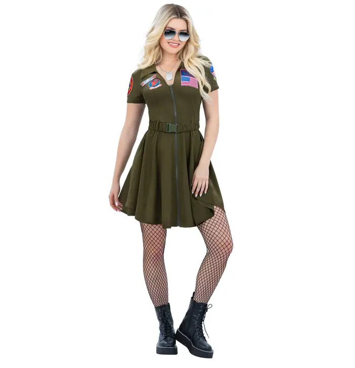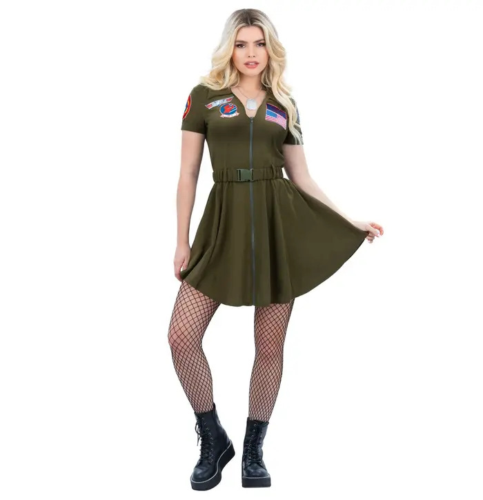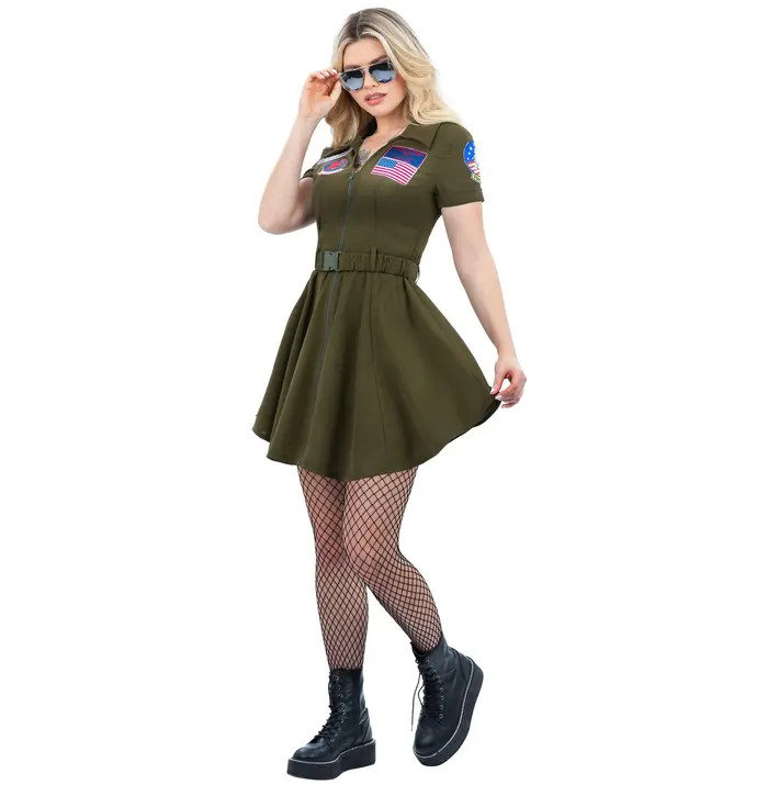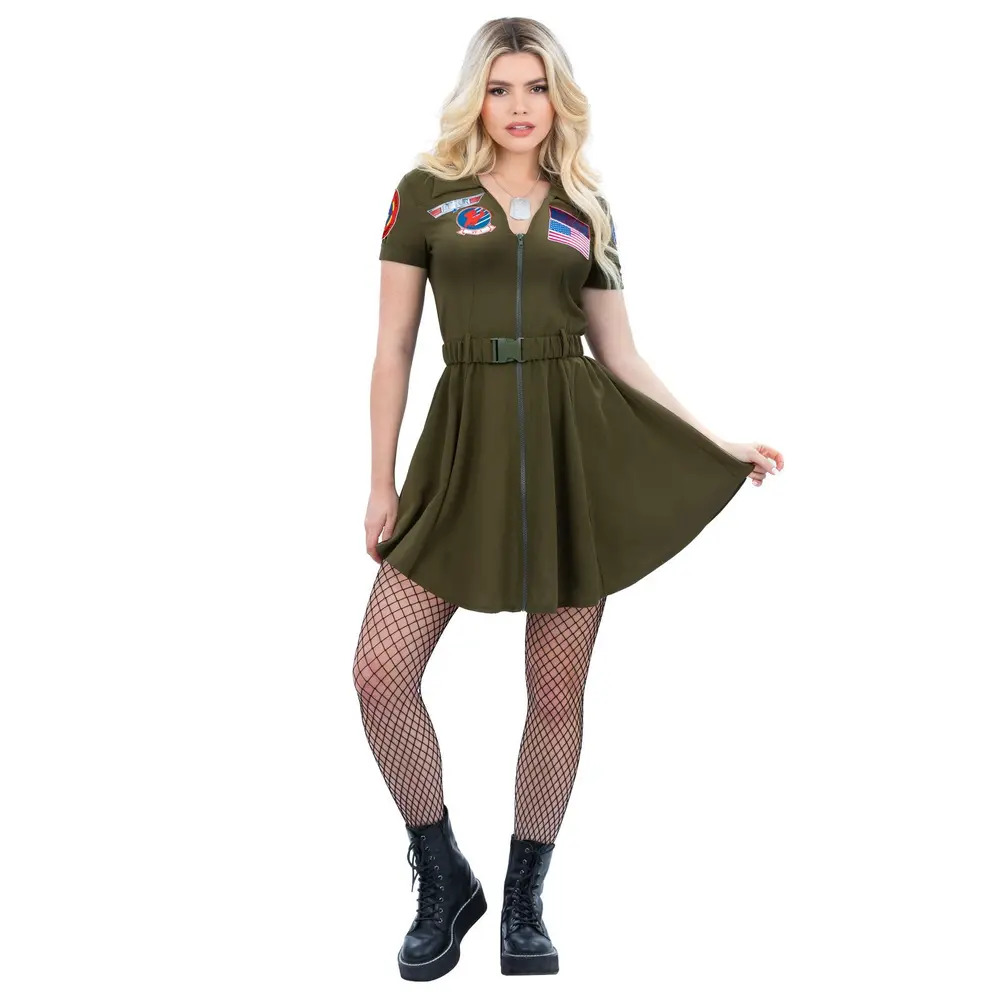 Ladies, gear up and fly high with this Top Gun A-Line Dress! Inspired by the iconic 80's film, this dress combines Topgun style with a flattering A-line silhouette. Whether you're reporting for duty or hitting the town, this dress will have you feeling like a stylish uniform-wearing maverick. So grab your aviators and get ready to take off in this fierce and fabulous Top Gun ladies dress.