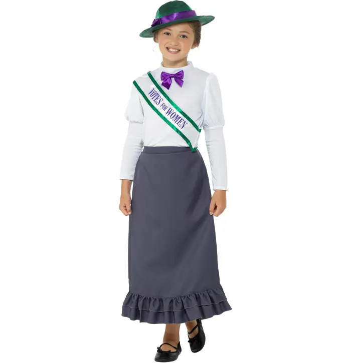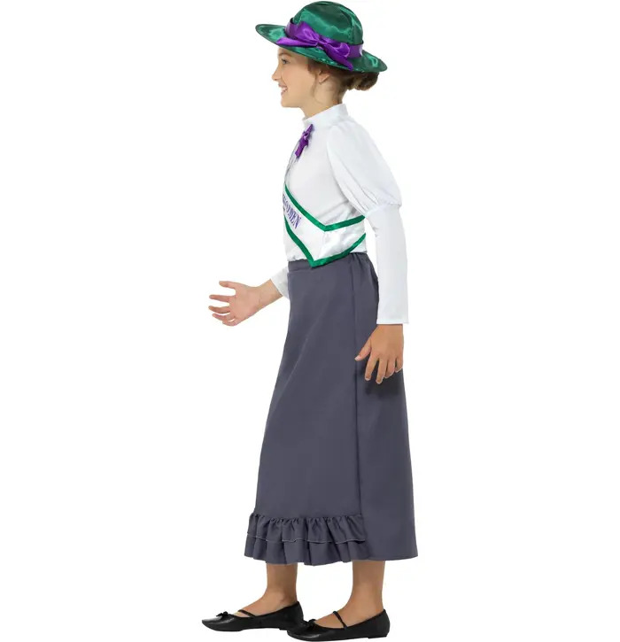 The Suffragette Movement was a hugely important time in British History, and at Smiffys, we're delighted to be able to offer our amazing Childs Victorian Suffragette Costume to help bring attention to the historical significance of the Suffragette Movement. A perfect outfit for Educational events, theatre productions, or even just a Victorian fancy dress party. This historical costume contains a classic period Grey Dress and attached Blouse and Necktie, with a suffragette Sash and Hat covered in the well known WSPU colours also included to complete your costume.