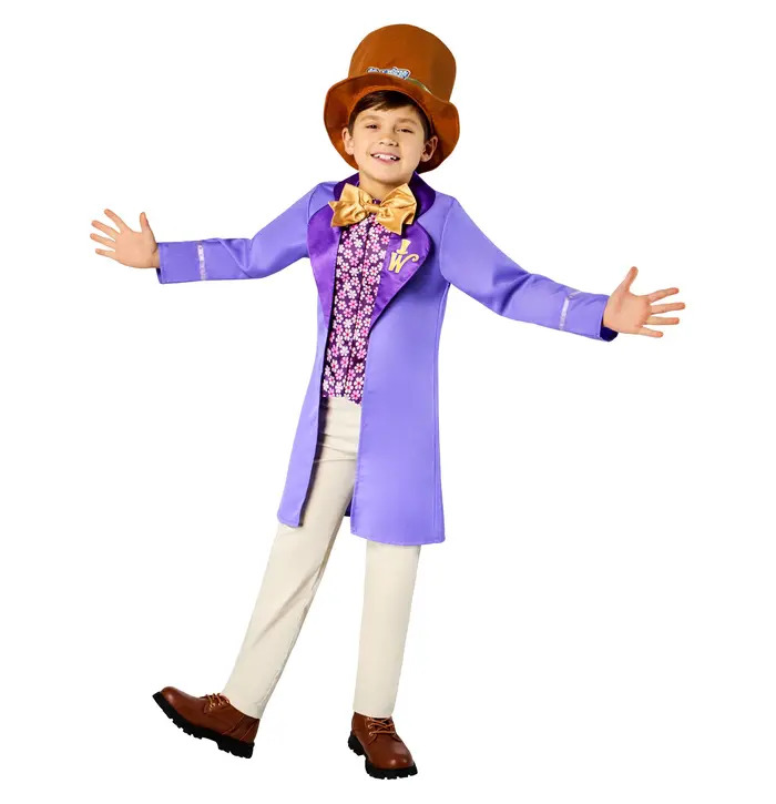 This kids chocolate factory themed fancy dress costume is perfect for bringing a touch of imagination and storybook magic to parties and events. Featuring a brightly coloured long coat with decorative details, matching bow tie, and a playful, eccentric design, it creates an instantly recognisable sweet-maker inspired look. Ideal for World Book Day, fancy dress parties, school events, or theatrical performances, this costume allows children to step into a fun and creative character role. Comfortable and eye-catching, it’s a great choice for young fans of classic stories and whimsical costumes.